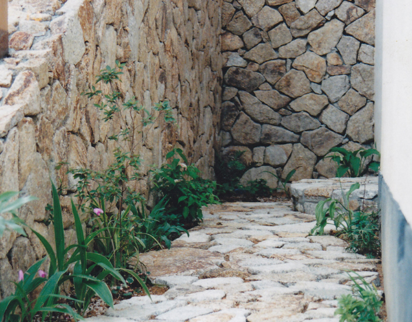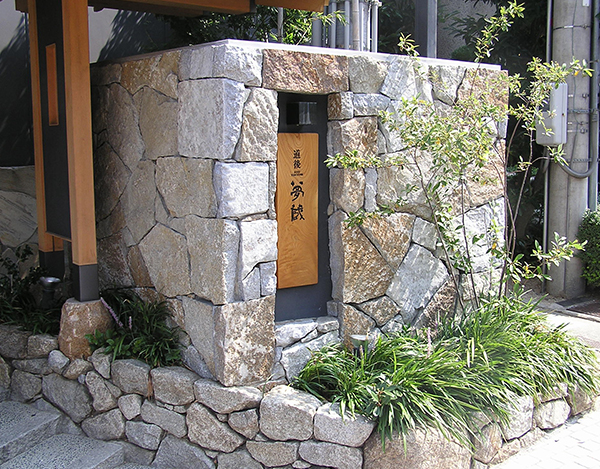 旅館入口・栗石